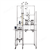 該裝置由玻璃塔釜,玻璃塔節,玻璃塔頭,玻璃真空分液器,玻璃采出液收集罐,塔電加熱系統塔節電加熱控溫系統,回流比控制系統等組成。分餾中,氣液兩相充分接觸,多次進行熱交換,使柱的頂部大部分低沸點組分從蒸餾頭分出,高沸點組分留在瓶中,從而達到多次不同沸點的組分物質的分餾提純的目的,具有分離效率高、操作簡單等優點。