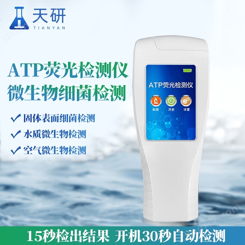 wifi型ATP熒光檢測儀為全新升級產品,安卓智能操作系統。操作采用生物化學反應方法檢測ATP含量,ATP熒光檢測儀基于螢火蟲發光原理,利用“熒光素酶—熒光素體系"快速檢測三磷酸腺苷(ATP)。ATP拭子含有可以裂解細胞膜的試劑,能將細胞內ATP釋放出來,與試劑中含有的特異性酶發生反應,產生光,再用熒光照度計檢測發光值,微生物的數量與發光值成正比,由于所有生物活細胞中含有恒量的ATP,所以ATP含量可以清晰地表明樣品中微生物與其他生物殘余的多少,用于判斷衛生狀況。